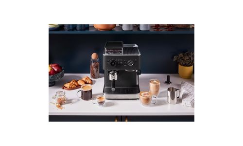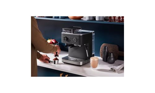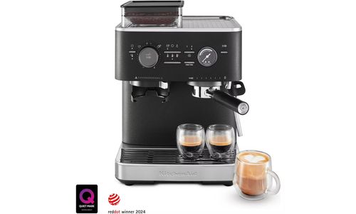 Met de halfautomatische espressomachine van KitchenAid met koffiemolen kun je eenvoudig variëren. Jij bepaalt en maakt al je favoriete espressodranken precies zoals jij ze lekker vindt, van espresso of lungo tot latte, cappuccino en nog veel meer. Met de geïntegreerde conische koffiemolen maal je consistent en er zijn tot wel 15 verschillende maalgraden, van grof tot fijn. Zo vergroot je de smaak van elk kopje. Verwissel bonen, vul ze bij en leeg het bonenreservoir om te genieten van eindeloos veel koffievariëteiten. Dankzij de slimme doseringstechnologie bereid je met één druk op de knop het volume en de consistentie voor 1 of 2 koppen. De eenvoudig aan te stampen filterdrager is 58 mm en ontworpen met verzonken tuiten voor een vlakke basis die aanstampen makkelijker maakt dan bij een traditionele filterdrager van espressomachines voor thuis. Zo geniet je dus altijd van optimale smaak en een rijk cremalaagje. De watertemperatuur pas je eenvoudig naar smaak aan en de krachtige pomp van 15 bar zorgt voor de optimale waterdruk voor een smaakvolle espresso. De espressomachine is Quiet Mark gecertificeerd en heeft 3 jaar garantie.