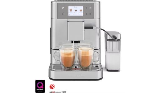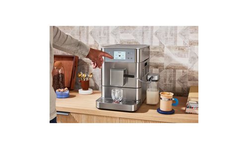 De volautomatische espressomachine KF7 van KitchenAid is de hoogwaardige espressomachine voor thuis. Je maakt eenvoudig al je favoriete espressodranken met meer dan 20 receptopties die toegankelijk zijn via een intuïtief touchscreen in kleur. Als je de voorkeur hebt voor een bepaalde sterkte, grootte of temperatuur, kun je dit instellen en bewaren als favoriet. Maak tot wel 4 gebruikersprofielen, zodat iedereen in huis in een handomdraai op de bank kan ploffen met zijn of haar favoriete drank. Deze volautomatische machine maalt en doseert je favoriete koffiebonen. Verwissel bonen, vul ze bij en leeg de hopper, die automatisch resterende bonen verwijdert tussen verschillende batches. Doordat melk automatisch wordt opgeschuimd en gestoomd, geniet je van perfecte melkdranken. En dankzij de dubbele melkuitvoer kun je twee dranken tegelijk maken. De espressomachine is Quiet Mark gecertificeerd en heeft 3 jaar garantie.