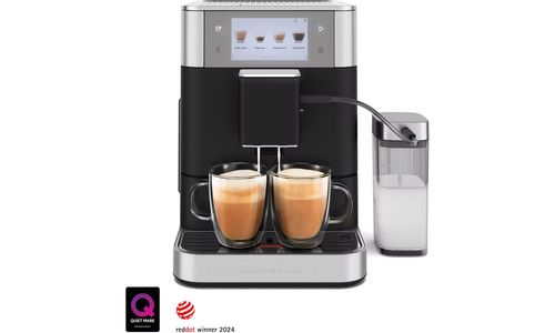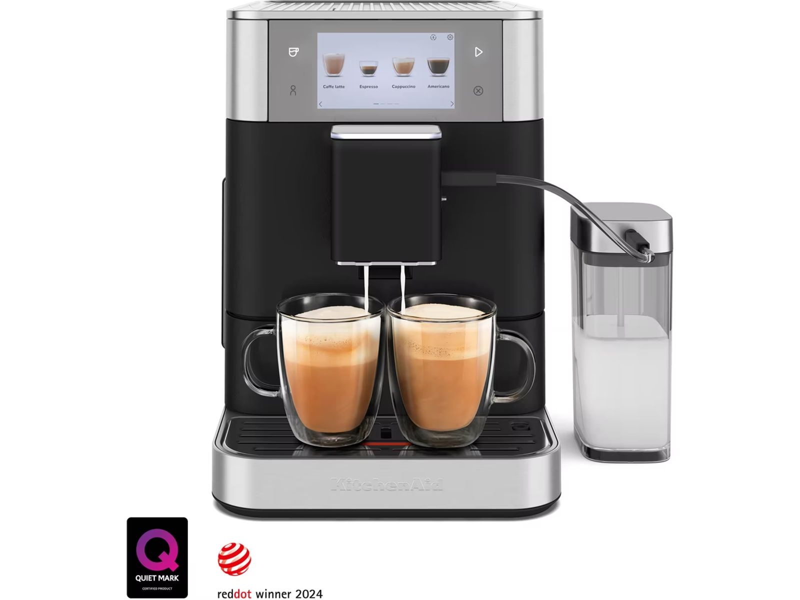 De volautomatische espressomachine KF8 van KitchenAid is de ultieme espressomachine voor thuis. Je kunt al je favoriete espressodranken maken met meer dan 40 vooraf ingestelde recepten die toegankelijk zijn via een intuïtief touchscreen in kleur. Als je de voorkeur hebt voor een bepaalde sterkte, grootte of temperatuur, kun je dit instellen en bewaren als favoriet. Maak tot wel 6 gebruikersprofielen, zodat iedereen in huis in een handomdraai op de bank kan ploffen met zijn of haar favoriete drank. Deze volautomatische machine maalt en doseert je favoriete koffiebonen. Verwissel bonen, vul ze bij en leeg de hopper, die automatisch resterende bonen verwijdert tussen verschillende batches. Doordat melk automatisch wordt opgeschuimd en gestoomd, geniet je van perfecte melkdranken. Bovendien kun je naast gewone melk ook veganistische alternatieven zoals haver- of sojamelk gebruiken. De espressomachine is Quiet Mark gecertificeerd en heeft 3 jaar garantie.