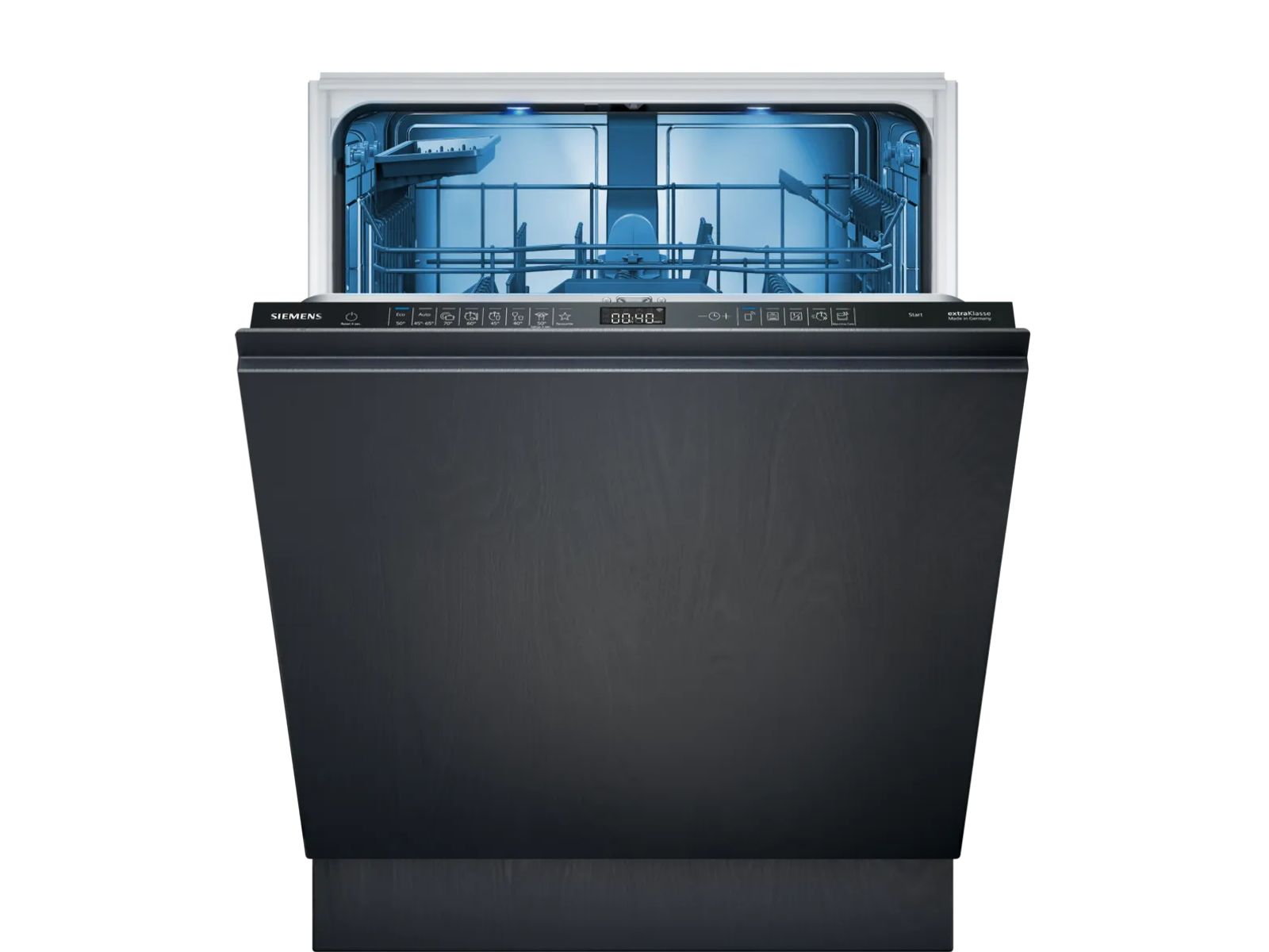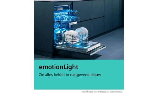 Open de deur naar een stijlvol verlichte vaatwasser in rustgevend blauw. De slim geplaatste ledverlichting boven in de vaatwasser wordt automatisch geactiveerd zodra je de deur opent, en gaat weer uit als je de deur sluit.