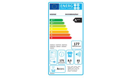| Droogtijd (volledig geladen katoen): | 175 min/cycle |