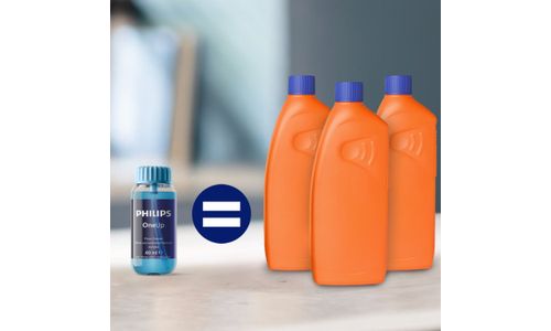De ultra-geconcentreerde formule van Philips OneUp schoonmaakmiddel zorgt ervoor dat 1 flesje tot 40 dweilsessies meegaat.