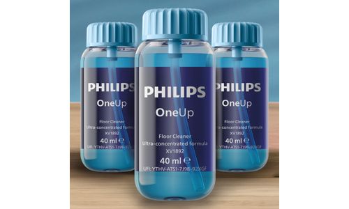 Philips OneUp ultrageconcentreerde vloerreiniger is speciaal samengesteld voor Philips OneUp elektrische dweilen. De reiniger garandeert topprestaties bij het schoonmaken en verlengt de levensduur van uw dweil bij elk gebruik.