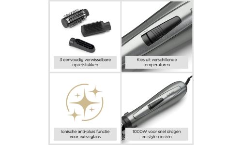 - De gladmakende föhnborstel vormt en strijkt het haar glad terwijl je droogt, voor gladde, gepolijste resultaten.